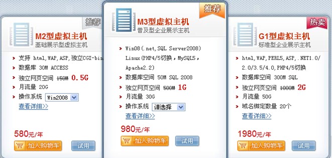 空间商就太多了,比较大的万网、新网、新网互联、35互联、中资源、时代互联、西部数码、美橙互联等等,其中还有香港主机,美国主机等等,不想备案的可以选择这些,不过如果公司正规,尽量还是备案吧,下面仍是万网的报价,我不是万网的代理上,也没必要给万网做广告,只万网确实是在空间域名这方面做的比较早的。万网主机的价格,确实很高,这是事实,如果觉得高的话,我们可以选择去万网的代理上那里,价格要低很多,当然了也可以选择其他的空间提供商。一般企业站,200m空间足够。(需要注意的是,除了价格外,空间的稳定性也很重要)